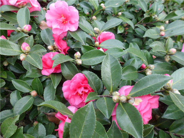 在刚刚过去的整个冬天里,大片大片的,粉色的、红色的茶梅盛开在教学楼广场北边和纬三路南侧绿化带里,花瓣掉落的时候整条路就像铺上了粉红色的地毯。