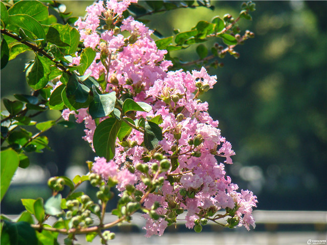 体育馆周围,纬三路边点缀着紫薇,有紫色、白色、粉色、红色四种花色,开满整个夏天,花期达百日。