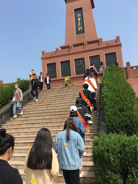 活动在全体同学响亮的国歌声中正式拉开序幕。国歌唱毕,全场肃立,全体同学向革命烈士默哀致敬,缅怀英勇奋战的革命战士们。随后,全体同学依次向烈士们敬献鲜花并围绕纪念碑瞻仰,深情缅怀革命先烈。