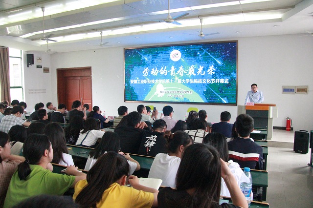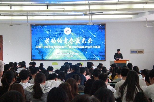 五月榴花照眼明,枝间时见子初成。为深入贯彻落实习近平新时代中国特色社会主义思想,丰富校园科技文化建设。 5月11日上午,学院学生处在教学楼阶梯101教室隆重举办第十一届科技文化节开幕式。学院党委书记石小河、常务副院长李庆峰、纪委书记周理瑞、院长助理汪志锋和第十一届科技文化节组委会相关成员出席了开幕式。本届科技文化节还邀请到2019年全国“最美职工”、安徽省五一劳动奖章获得者苏保信同志及“85后青年导演”唐恺做客开幕式现场。