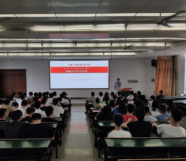 为提升学生金融风险防范意识和金融安全意识,进一步加强校园不良网贷整治工作,净化校园环境。6月12日下午,学院学生处联合武保部在阶梯101教室共同举办了2019年金融安全知识主题教育讲座。本次讲座邀请到铜陵市公安局铜官分局新庙派出所严晨警官为学生开讲。