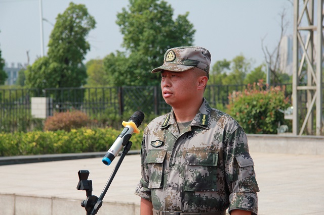 武警支队队长、19级新生代表分别代表军训教官和2019级新生发言。