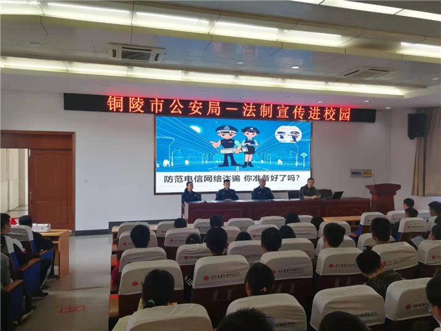 随后,铜陵市刑警支队副支队长王军,给同学们讲解了如何防范校园电信诈骗犯罪活动,并现场观看了防范校园电信诈骗教育短片,详细讲解了电信诈骗的方式、特点、种类、危害性以及防范电信诈骗常识,提醒广大师生要掌握正确的防范方法,注意保护好个人隐私。在接到不明来电时,不要理睬,一旦上当受骗,要保存好相关证据,如联系电话、对方账户、转账凭证等,并立即向公安机关报案。