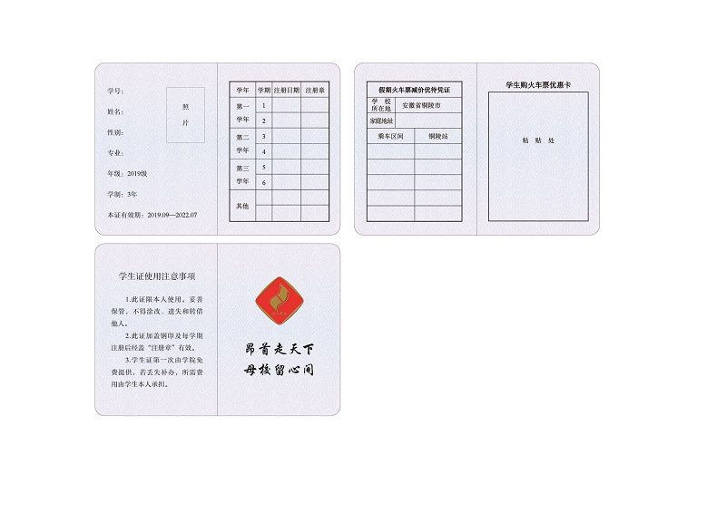 为进一步规范学生证的管理,减少信息错误,方便学生,学院从本学期起,启用了新版学生证。2019级新生及本学期起补办的学生证都采用新版学生证。已发放的学生证不作更换,同样有效。据悉,新版学生证采用蓝底烫银字;仿皮对裱式;封底添加校训标识,增强了校园文化气息。在内页设计上增加了美观度,部分信息采用电脑直接打印,改变了原有学生证手写时字迹不清的现象。