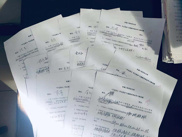 根据学院党委“不忘初心、牢记使命”主题教育实施方案要求,近日,机械工程系党支部召开支部大会,开展“不忘初心、牢记使命”主题教育集中学习研讨。研讨会上,学院党委委员、联系点领导李庆锋同志结合工作实际,就高职院校如何践行“立德树人”这个根本任务,谈了自己的学习体会。会上,对全体党员进行了“不忘初心、牢记使命”主题教育理论测试,检验学习阶段成果,为不断推进主题教育向纵深发展打下坚实基础。