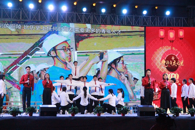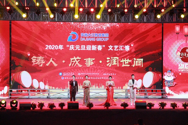 大江奔腾立潮头,铸人成事润世间。12月27日下午,安徽大江教育集团2020年“庆元旦·迎新春”文艺汇演在市体育中心隆重举行。市教体局党委委员、副局长管清华、集团全体领导、各成员单位教职员工和安工学院、安徽铜陵技师学院全体学生欢聚一堂、辞旧迎新、共贺新年。铜陵网络台同步对汇演进行了现场直播和网络直播,在线观看直播的观众更是高达1.5万多人。