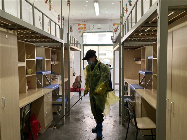 其余学生转移到备用寝室,对原寝室进行应急消毒