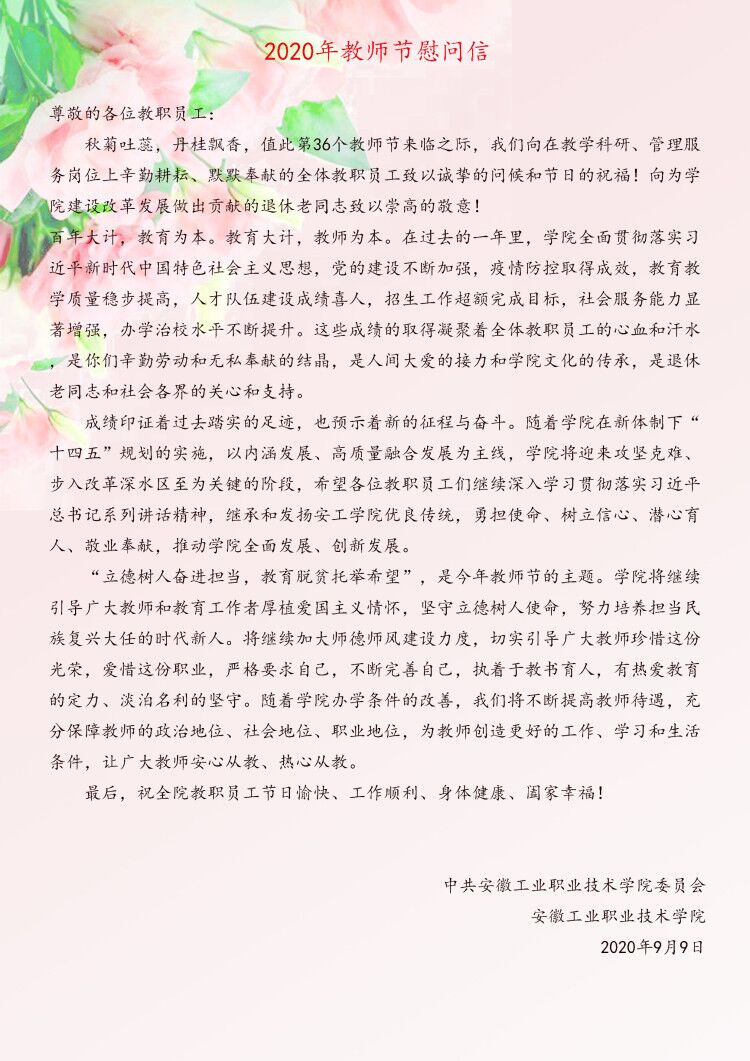 2020年教师节慰问信