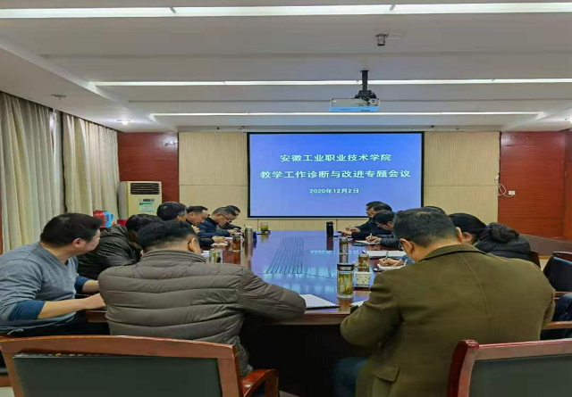 会议室召开了2020年12月份教学工作诊断与改进专题会议。学院常务副院长李庆峰、办公室、政治人事部、教务处(质控处)、学生处、招就处、实训管理中心及各系部主要负责人参加了会议。