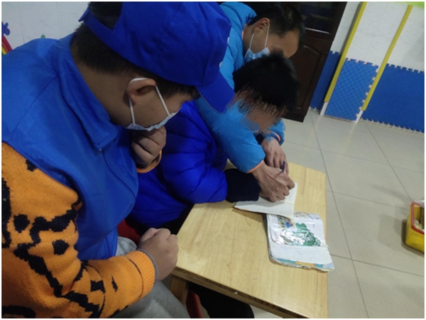10余名志愿者穿上统一的志愿者服装,来到铜陵市飞洋康复中心,园长等工作人员热情地迎接了我们,跟我们讲了一些关于特殊儿童的情况并安排我们走进特殊儿童课堂,配合中心老师开展丰富有趣的集体课程。志愿者每个人找了一个孩子,和他们坐在一起,一对一辅助。一开始孩子们显然对第一次见面的志愿者们感到恐惧和抵抗,志愿者们轻声细语,采用温柔的口吻跟孩子们交流,让孩子们慢慢地放下戒心,接受我们。上课中,志愿者们坐在孩子们旁边,跟在老师后面一起学习。因为有些特殊儿童他们不愿意跟志愿者交流,志愿者们就一遍又一遍不厌其烦地轻声教他们。下课了,志愿者们带着小朋友们练习投球,他们的肢体会有不协调,志愿者们就手把手教他们怎么投篮,小朋友们都玩的很开心。时间转瞬即逝,一下午的美好时光就这样过去了。离别时,孩子们和志愿者紧紧相拥,眼里是满满的不舍。活动最后志愿者和孩子们一起合影,留下这一美好的时刻。