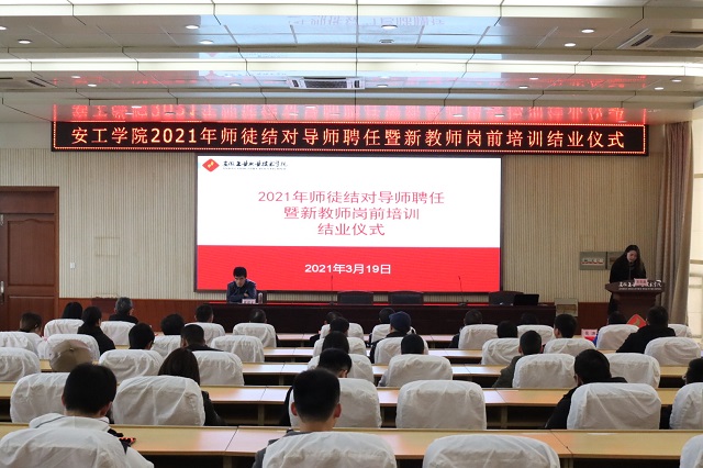 3月19日下午,学院在阶梯301报告厅举办2021年师徒结对导师聘任暨新教师岗前培训结业仪式。学院党委书记李庆峰、党委副书记范清义、组织人事处、教务处、系部负责人、学院青年教师及9对结对师徒参加了本次活动,仪式由范清义副书记主持。