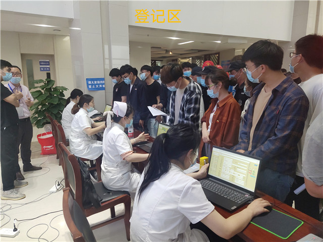 同学们佩戴口罩按序进入侯种区,凭借身份证进行登记。同时医务人员会细心询问病史及告知注意事项,确保每位同学安全地进行疫苗的接种。