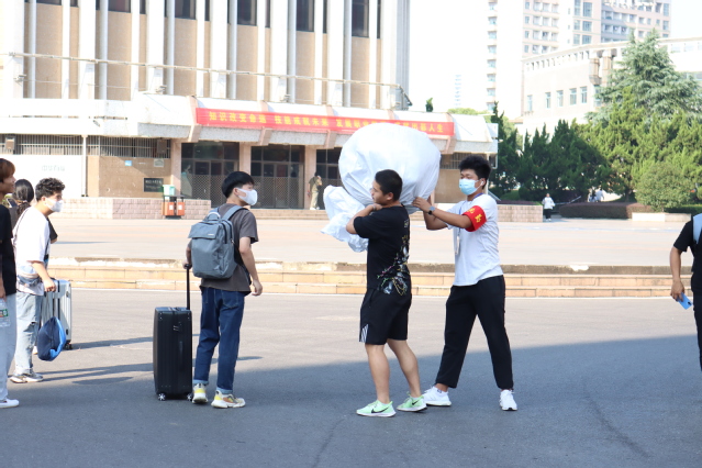 迎新期间,学院武装保卫处的工作人员在校门口认真测温,核查健康码;学生会干部、志愿者们组建了志愿者服务队伍,热情地为前来报到的车辆充当指引员,帮助新生搬运行李,向新生介绍学院的基本情况,耐心解答新生的疑问,引导新生有序地办理入学报到手续。