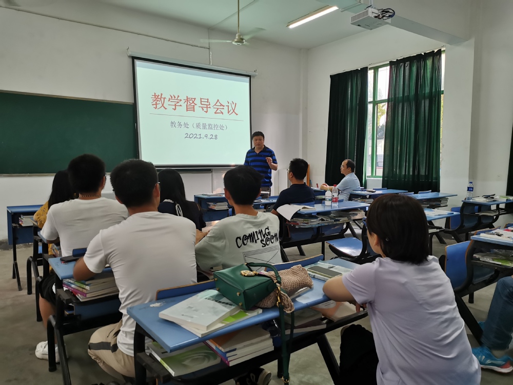 为深入推进学院教学督导制度建设,切实提升2021年新入职教师教学能力和水平,帮助新教师更好更快地投入教学工作,完成既定教学目标和任务,9月28日下午,由教务处(质控处)牵头召开了学院2021年秋季学期教学督导会议。会议由教务处(质控处)副处长主持,教学督导办主任罗海峰、教务处(质控处)相关人员、特邀督导教师及被督导教师共计16人参加了本次会议。