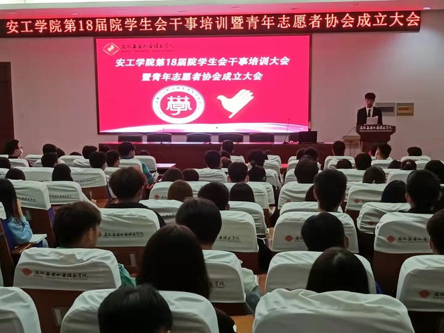 金秋十月,丰收时节,为了更好推进学院学生会工作的开展,对新一届学生会成员工作展开教育培训,10月26日,学院团委在阶梯201教室召开安工学院第18届院学生会干事培训暨青年志愿者协会成立大会。