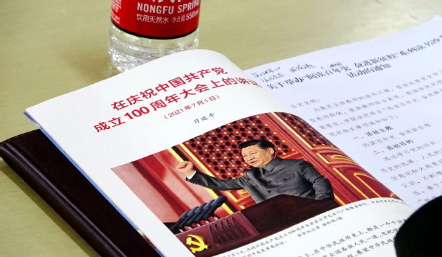 活动中,来自各院系的老师们以朗读接龙的方式重温了习近平总书记在庆祝中国共产党成立100周年大会上的重要讲话,并围绕近期所读的党史相关书籍逐一分享读书心得。《红星照耀中国》《长津湖》《火种》《周恩来传》《人间有味是清欢》《毛泽东选集》......大家在交流中共同领略红色文化的魅力,感受红色经典的内涵,在党史中感受奋进力量,奋力书写新时代赋予教师的责任和担当。