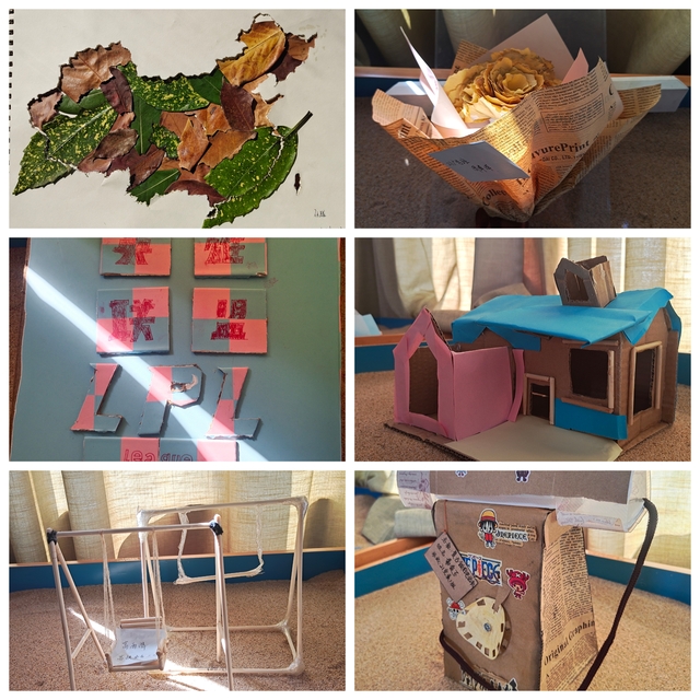 本次活动以环保、创意、手工为主题,利用塑料瓶、易拉罐、纸盒、废旧衣物布料等废旧物品,通过自己的创意变成一件件工艺品、艺术品和有实用价值的日用品或装饰品等。充分发挥自己的才智和想象力及动手能力。下面让我们一起看看这些作品吧: