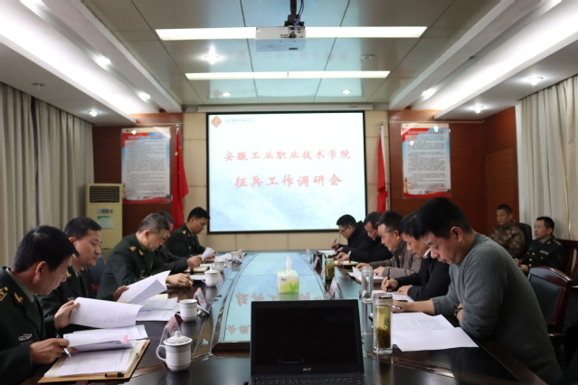 会上,院长陈世虎代表学院校对前来调研的各位领导表示热烈欢迎,简要地介绍了学校办学历史等有关情况,汇报了学院对《安徽省普通高等学校征兵工作实施办法》《安徽省普通高等学校“两站两服务”平台建设运行规范》两个文件的落实情况,并从组织机构构建、责任分工落实情况、征兵组织宣传等方面具体介绍了学院的征兵工作。他表示,学院历来重视大学生征兵工作,成立了由党政主要领导担任组长的双组长制的征兵工作领导小组,出台了大学生入伍激励机制,设立了大学生“献身国防贡献奖”,征兵季安排有专人全程做好学生征兵的服务工作,对于退伍复学的学生,学校在转专业、学费补偿等方面也予以大力支持。
