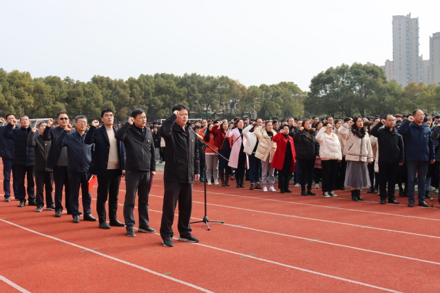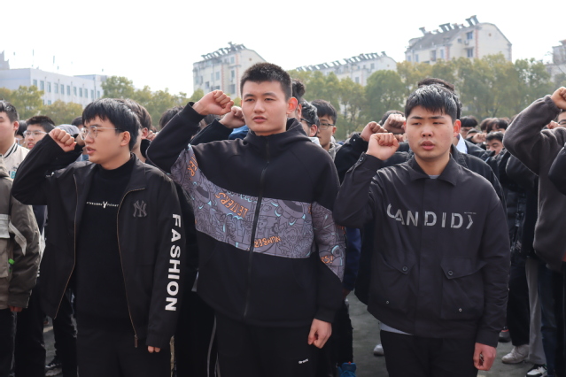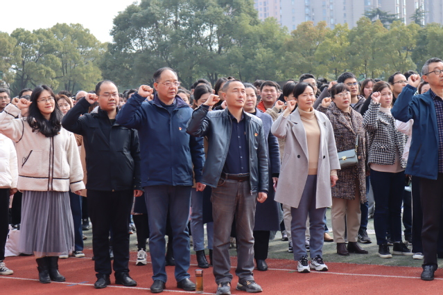 学院领导班子带领全体教职员工在国旗下庄严宣誓,要做有理想信念、有道德情操、有扎实学识、有仁爱之心的好老师,为培养具有创新精神和实践能力的技术技能型人才而不懈奋斗!