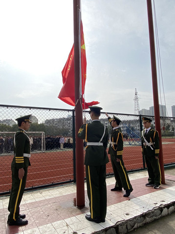 伴随着嘹亮的国歌,在全院师生的注目下,鲜艳的五星红旗冉冉升起。全体师生肃立,一同面向国旗行注目礼,表达对伟大祖国的热爱与敬意,展现了新学期的良好精神面貌。