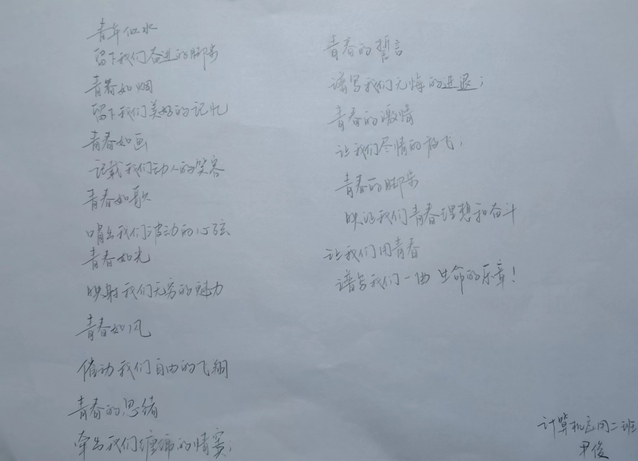 同学们在充分学习了解五四青年节的历史背景后,以诗歌的形式写下自己的感悟。