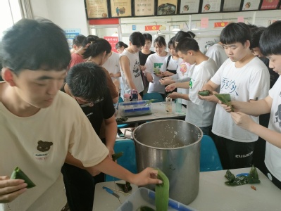 6月3日,端午节当天中午,学院团委组织同学们在第二食堂进行包粽子活动。同学们拿着粽叶,盆里盛满了糯米,一颗颗枣子、一片片粽叶,也盛满了大家的喜悦。折叠粽叶,填放食材,包裹成型,扎紧粽子……每一个步骤无不在学习,都考验着同学们的耐心。同学们一边认真地聆听着老师关于端午节来历及风俗习惯的讲解,一边动手做粽子。虽然大家做的不够熟练,形状也不太美观,但在老师的指导下和同学互相帮助下,一个个外形美观的粽子还是被包了出来。