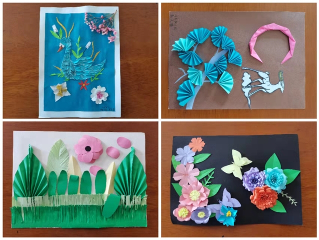 活动过程中,同学们通折纸、剪纸、卷纸来创造出属于自己的纸浮雕。在制作纸浮雕的同时提高自己的审美能力、制作能力和设计能力。