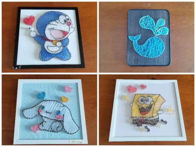 同学们通过钉子和线的缠绕把不同的图案勾画出来。制作过程中,同学们将一张白纸慢慢变成一个有图案的画像,也在制作的过程中慢慢提高自己的动手能力和审美能力。