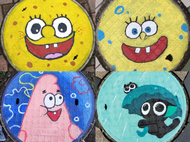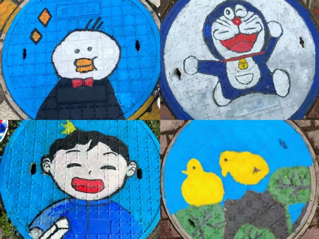 涂鸦活动由负责人安排人员任务,分组进行涂鸦。同学们都很积极,活动结束后同学们把场地收拾干净,留下了井盖上生动的图案。