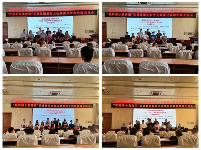 会上,介绍了2021-2022学年学院社团活动开展情况;教务处(质控处)处长宣读了“优秀社团”获奖名单;随后,颁奖典礼开始,工造天地社团、方圆法律社团、起点物流社团、扬帆市场营销社团、电子创客社团、物华标本社团、应用数学社团、海子诗文诵读社团、E-ZONE英语社团、小草电商社团、大学生棋类协会、爱心社、碧森环保协会、心理社团、青曦话剧社等15个专业社团、文体社团的指导教师与社长上台领取了证书。姜丽等6位获奖指导教师上台分享和交流了各自的经验和心得。