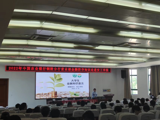 为增强同学们的安全理财意识,维护同学们的金融消费权益,6月16日,学院组织开展了“金融防诈知识走进学院”讲座活动。中国农业银行铜陵分行个人金融部副总经理丁玉婷受邀主讲。