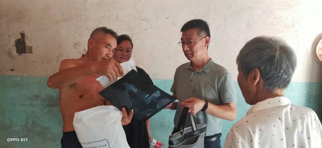 在帮扶对象陈遵玉家中,李庆峰详细了解该家庭情况、健康情况和生产生活情况,询问目前存在的困难和问题,并送上慰问金。
