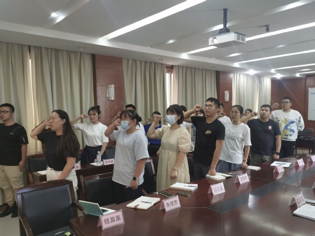随后,新进教职工代表金豪进行表态发言,全体新进教职工举起右拳庄严宣誓,铿锵有力、掷地有声。
