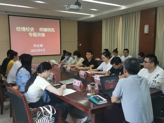 李庆峰结合我校实际,就校情校史展开系统介绍,以“师德师风”为主题开展讲座。他指出,要把师风师德作为第一标准、要把四个服务作为根本遵循、要把不断学习作为终生要求、要把创新创业作为人生追求、要把“四有”老师作为成长目标。践行育人使命、手托学生未来、肩扛学校希望。