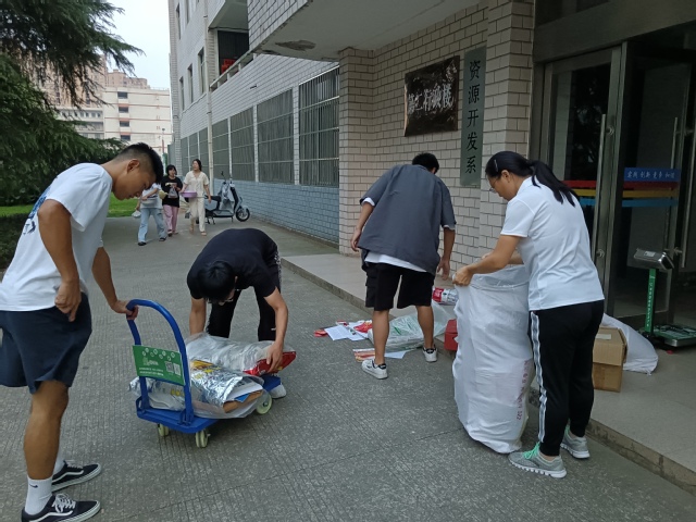 在回收过程中,工作人员都秉持着认真负责的态度,尽心尽力的完成了各自分配到的任务,同时积极为老师解答与回收相关的问题。工作人员齐心协力将装袋整理后的回收物品运送到回收站,在此期间,指导老师也对活动提供了专业上的指导与帮助。