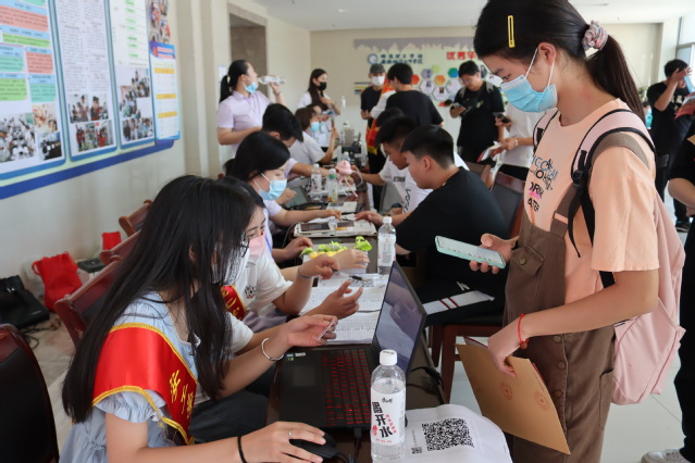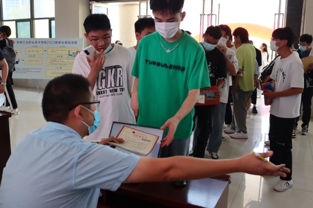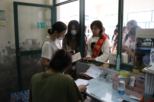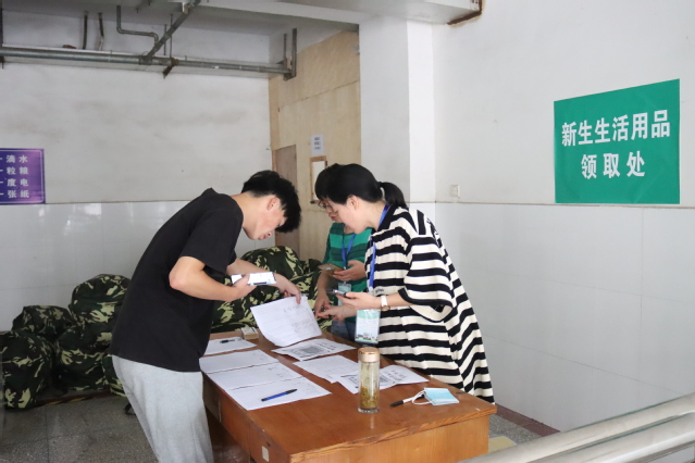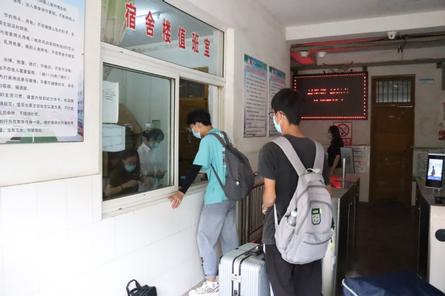 宿舍管理人员有条不紊的为新生办理住宿手续,确保新生在安工住的安心。