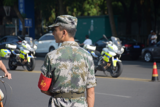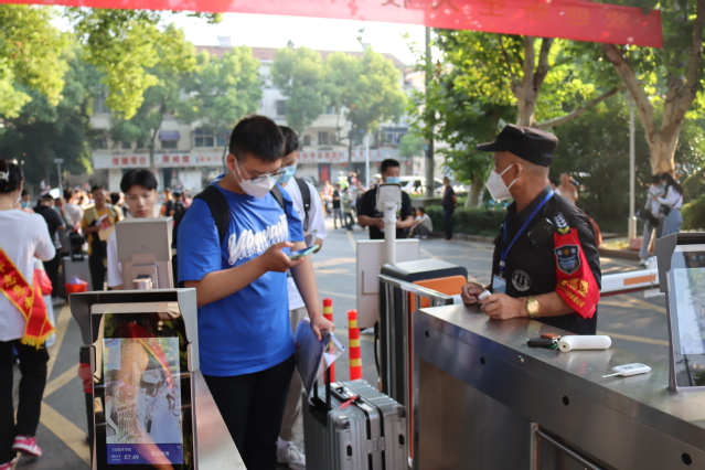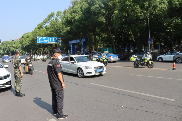 为保障新生报到期间学院安全保障工作平稳有序进行,学院保卫部联合铜陵市交警一大队天桥中队民警,在学校门口疏导交通。组织学院亮剑社团的退役军人配合安保人员核验双码、维持现场秩序。