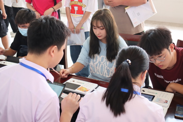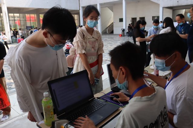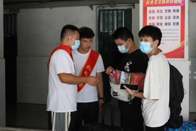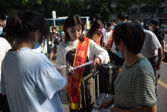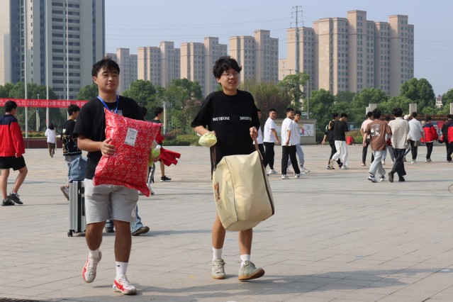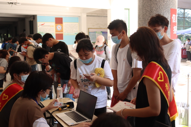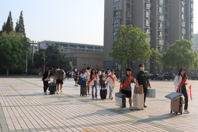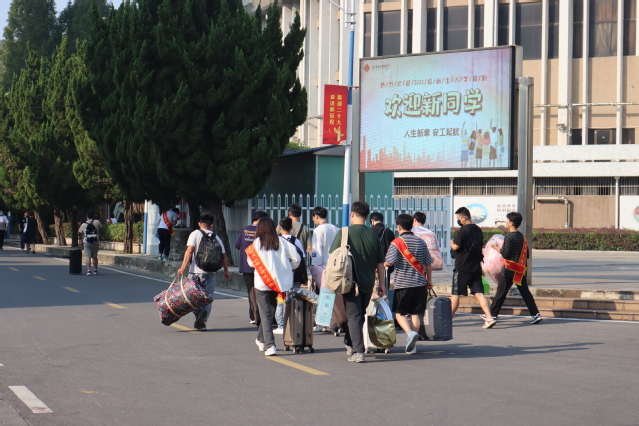 迎新当天,在校园各处都能看见身披红色绶带的志愿者们,一手拖着行李,一边绘声绘色地向新生们介绍学校,带新生熟悉校园各处环境。志愿者们奔走的身影和落下的汗滴为美丽的校园增添了别样的风采,也让新生们感受到了大学里的第一份温暖。