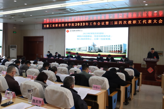 上午8:10,党委副书记范清义主持大会预备会,通过了三届四次教职工代表大会主席团和秘书长名单及大会议题。上午8:30,教代会第一次全体会议在庄严的国歌声中正式开幕。院长陈世虎首先代表学院作了题为《调整诊改固基础,守正创新强内涵奋力迈进高质量融合发展新征程》的工作报告。报告从八个方面回顾了学院2022年的工作:一年来,学院始终围绕战略目标,全面推进教学诊改,高质量发展基础逐步夯实;聚焦日常突出重点,学生工作形成新的特色;招就工作捷报频传,“四位一体”业务体系初步建成;规范调整逐步实施,队伍建设效果逐渐展现;紧紧抓住转型契机,认真谋划培训体系建设;以改促融以融求强,内部管理成效持续增强;统筹兼顾防控并举,明责尽责校园安全稳定;党建引领提质增效,推动事业高质量发展。