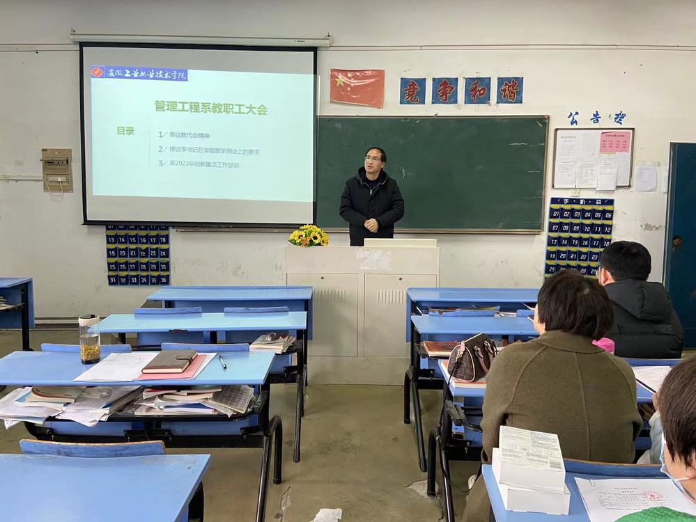 2月17日下午,管理工程系在实训楼北503教室召开2023年春季学期开学教职工大会暨教学、作风建设提升工作会议。管理工程系全体专兼职教师和辅导员参加了会议。