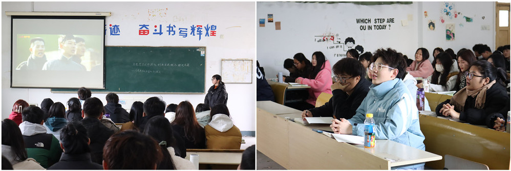 课堂上,学院全体思政课教师以奋发向上的精神面貌走入课堂,紧密结合党的二十大精神,精心设计教学内容和教学环节,运用活动式、情景式、项目化等多样化的教学方法,展示了一堂堂有思想、有创意、有温度的思政课。二十大精神、马克思的故事、长津湖战疫、《觉醒年代》电视剧……老师们将理论知识、传统文化、生动故事与思政教育密切结合起来,课程内容丰富多彩、贴近实践、与时俱进,引导广大学子认识青春的宝贵和绚丽,进一步厚植爱国情怀、激发奋进力量。课后,学生们纷纷表示要以实际行动践行党的二十大精神,建功新时代,奋进新征程,做有信仰、有品德、有本领、有毅力的优秀青年,为美好新时代贡献自己的青春和力量!