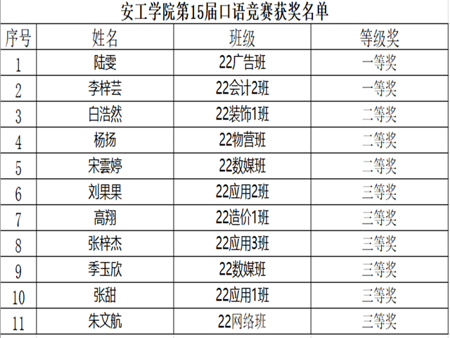 3月24日下午,由基础部英语教研室主办的安徽工业职业学院第15届英语口语竞赛在教学楼204、205教室举行。比赛在英语教研室全体教师和基础部大力支持下,克服前期疫情影响等不利因素,通过精心动员、报名、组织,来自全院各专业31名选手报名参赛,经笔试、口试两个环节,评出了一、二、三等奖。