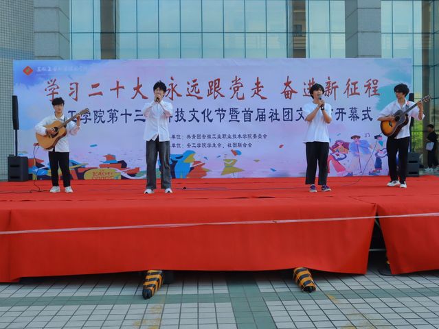 为充分发挥学院社团繁荣校园文化的作用,全面提升学生的综合素质,营造积极向上的艺术氛围,学院团委于4月21日下午在教学楼前广场举办了“学习二十大、永远跟党走、奋进新征程”第十三届科技文化节暨首届社团文化节文艺汇演,19个学生社团及学生会等团学组织参加了演出,现场气氛热烈。