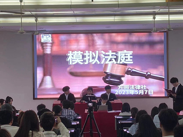 为了让同学们进一步了解民事案件法庭审理流程和细节,方圆法律社团精心挑选案例,细心组织社员排练,于5月7日在教学楼101阶梯教室成功举办了2023春“模拟法庭”活动。