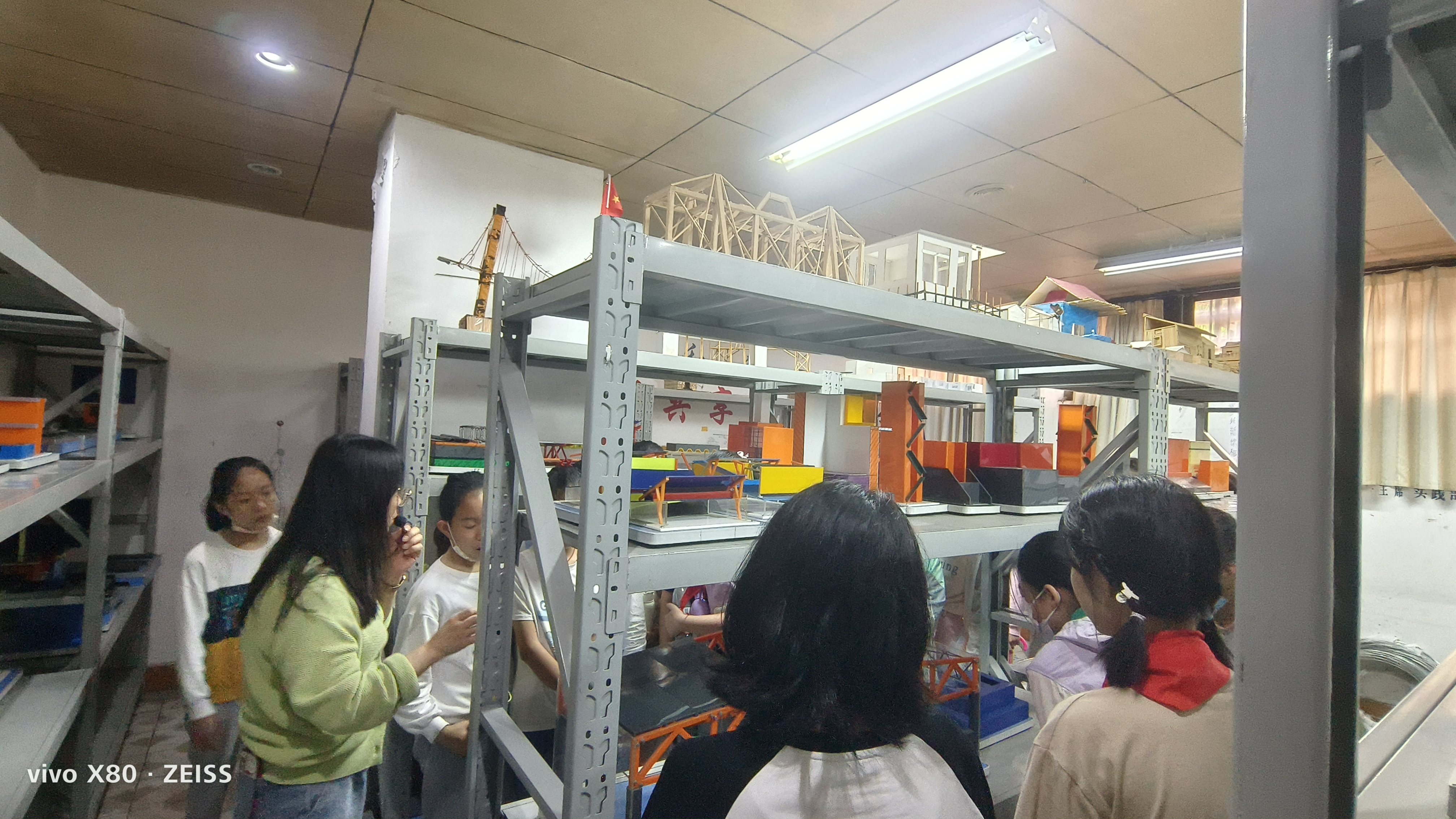 在建筑模型实训室中,姜老师介绍了各个建筑结构模型,并向孩子们普及了抗震小知识。同学们积极互动,热情参与,对模型充满了好奇,尤其是看到建筑剖面图中楼梯模型时,不禁惊叹道:“原来楼梯的结构是这个样子的!”