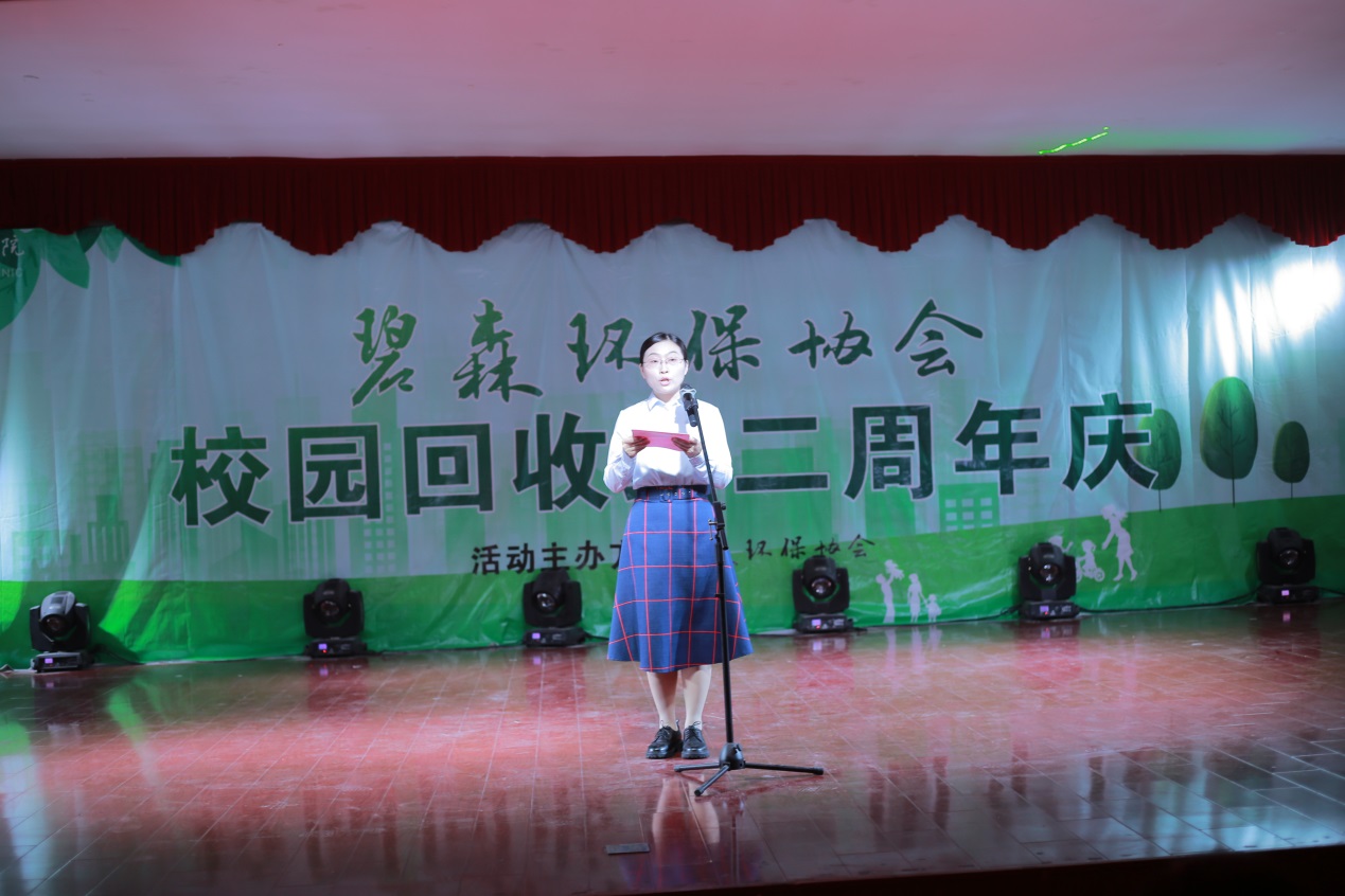 庆祝活动以“推行绿色回收,建设无废校园”为主题,以校园回收站贯穿始终,通过形式多样的表演展现了碧森环保协会的社团建设成果。
