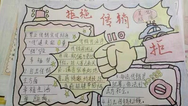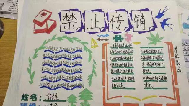 此次活动由机电学院学生会治安部组织开展,同学们踊跃报名、积极参与,认真创作每一个作品,通过创作手抄报,让广大学生认清传销的违法犯罪性质、欺诈本质和严重危害,帮助学生提高识别能力、增强防范意识,自觉抵制传销。