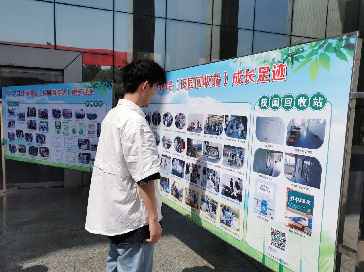 学院自2020年实施社团品牌创建与提升计划以来,各社团在教务处、团委、二级院系及指导老师带领下,开展了形式多样的品牌创建活动,取得了很好的成绩。5月23日上午,学院在教学楼一楼举办了碧森环保协会(校园回收站)成长足迹展,旨在通过此次,让同学们了解社团活动在提高学生技能方面起到了很好的提升和促进作用。