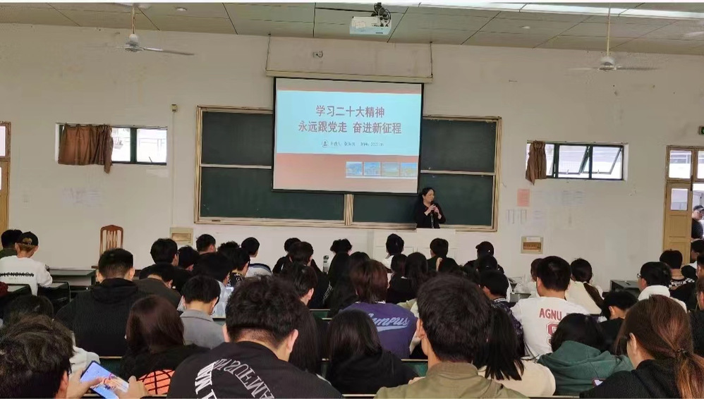 为学习宣传贯彻党的二十大精神,深入推动习近平新时代中国特色社会主义思想和党的二十大精神入脑入心入行,引导青年学生坚定不移听党话、跟党走,5月22日,资源开发系党支部在教学楼阶梯教室202面向资源开发系入党积极分子、学生骨干举办党的二十大精神宣讲会。