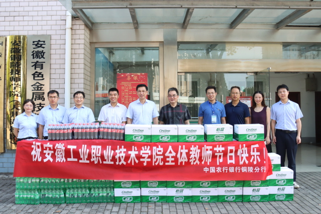9月9日上午,在第39个教师节来临之际,中国农业银行铜陵分行主要负责人章新柱行长一行来beat365开展慰问活动,为广大教师送来节日祝福及慰问品。